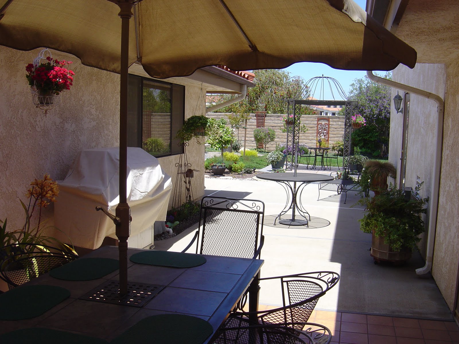 Here is the view out their back window onto their u-shaped patio - in Santa Maria they get winds every afternoon, cold winds. So the u-shaped patio helps to buffer that cold each day.