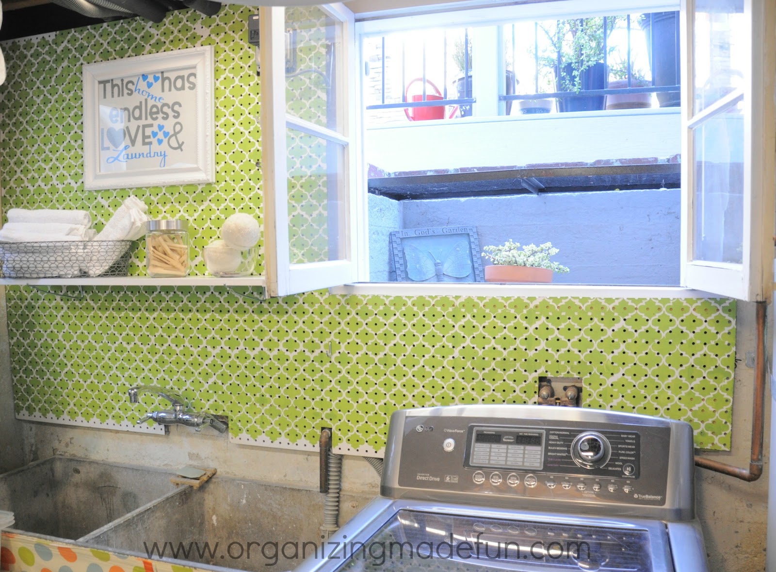 Here is another more direct shot of the whole thing. I will be showing you, next week, more details on how we did this and some MORE organizing of this laundry area - because you can NEVER have too much organizing! What do you think? Is pegboard fun or what? How about that light?