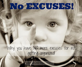If you simply take fifteen minutes each day, and tackle one small area at a time, you can start to get organized. My 31 Days of Spontaneous Organizing challenge, from last October, is an easy place to start. Even if you have a LOT to organize, take a little at a time. If you don't make the time, you'll be wasting that time! It's not about "having" the time, it's about MAKING the time! Is this your excuse for not organizing?
