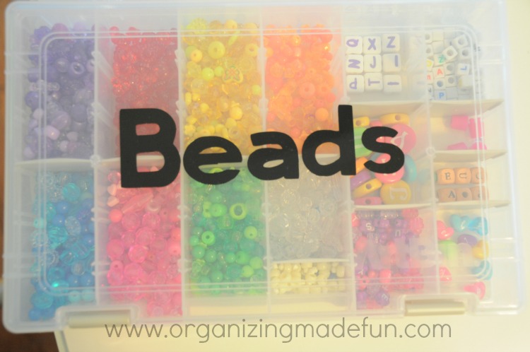 And on top of the parts organizer are the beads! My daughter likes making jewelry. We tediously organized them by color - which I normally wouldn't recommend {cause it takes forever to sort} - but I think for something like this it works well.